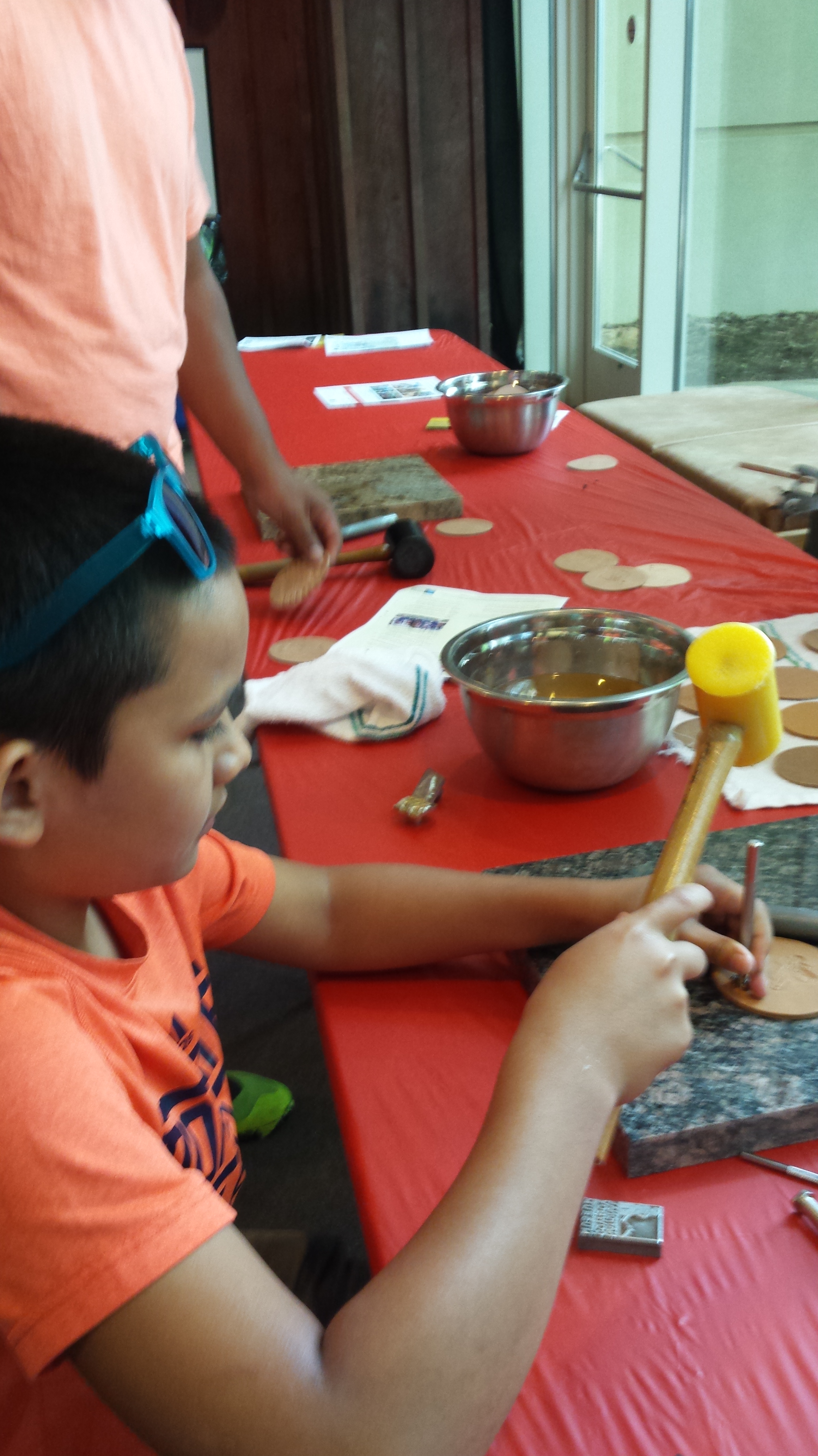 Leather stamping with the Boy Scouts.